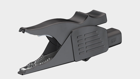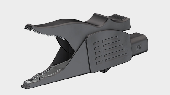 Made of brass, with all-round insulation. Toothed gripping jaws with fine-wire clamping surface. Ø 2 mm rigid socket in insulator.