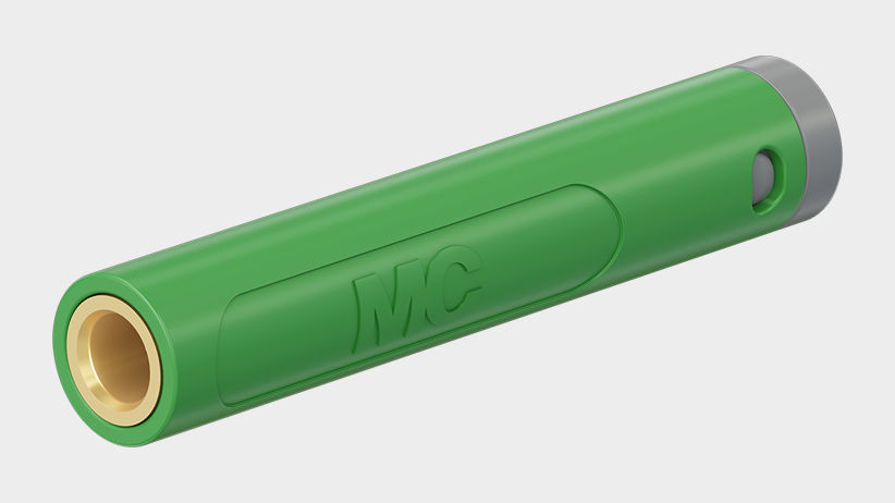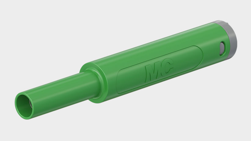 In-line, Ø 4 mm, with spring-loaded MULTILAM, for self-assembly of test leads. With retractable sleeve to prevent accidental touching.